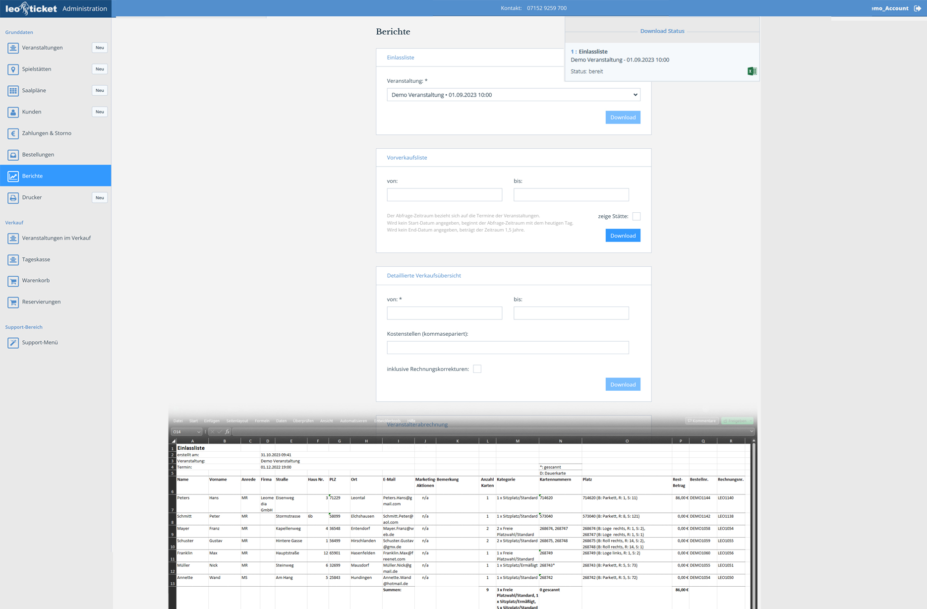 Vielfältige Berichte stehen Ihnen zur Verfügung – von der Einlasskontrolle für das Personal bis zur Analyse des Vorverkaufs oder der Untersuchung der verschiedenen Besuchergruppen. Diese Berichte lassen sich mühelos in andere Systeme exportieren.