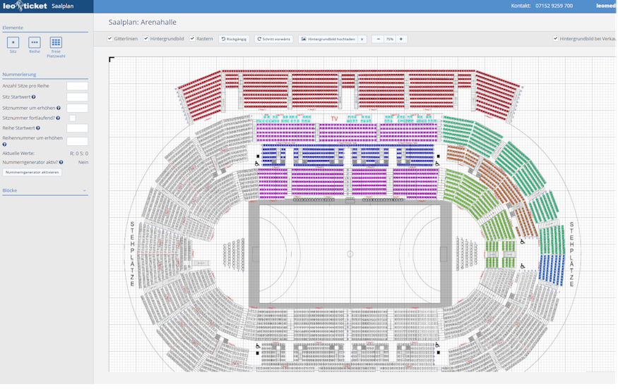 Blöcke, Reihen, Sitze und freie Platzwahl – alles, was zu einem Hallen- bzw. Stadionplan gehört, können Sie ganz leicht mit leoticket abbilden und jederzeit wieder ändern. Den ersten Plan legen wir Ihnen im Rahmen des Onboarding-Projektes gleich mit an. Über das Zeichenwerkzeug von leoticket nehmen Sie ganz leicht selbst Änderungen vor. Wenn die Zeit dafür mal nicht da ist, hilft das leoticket-Team.